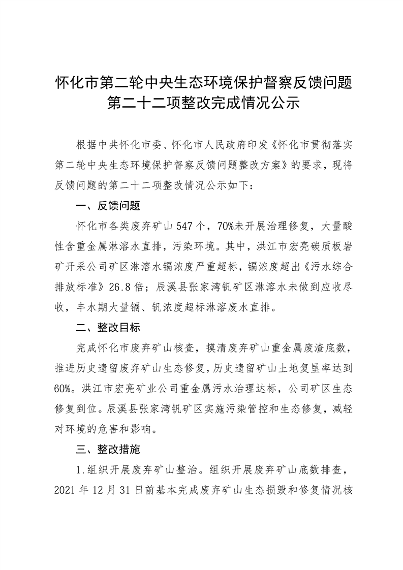 懷化市第二輪中央生態(tài)環(huán)境保護(hù)督察反饋問(wèn)題第二十二項(xiàng)整改完成情況公示
