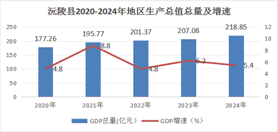 據(jù)初步核算,全縣地區(qū)生產(chǎn)總值 218.85億元[2],同比增長5.4%(按可比價格計算,下同)。其中,第一產(chǎn)業(yè)增加值34.44億元,同比增長2.7%;第二產(chǎn)業(yè)增加值83.21億元,同比增長7.2%;第三產(chǎn)業(yè)增加值101.19億元,同比增長4.8%。三次產(chǎn)業(yè)結(jié)構(gòu)為16:38:46。按常住人口計算,全縣人均地區(qū)生產(chǎn)總值為44365元,同比增長6.8%。