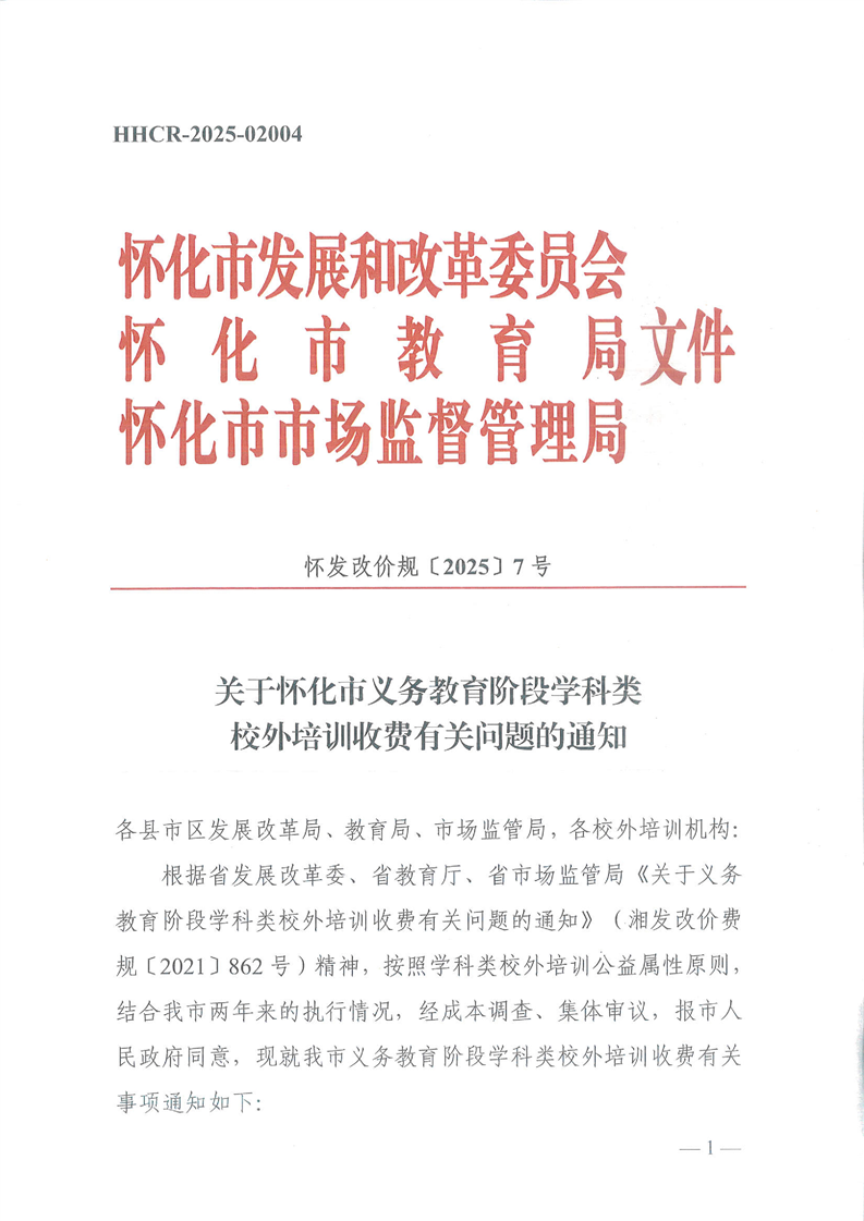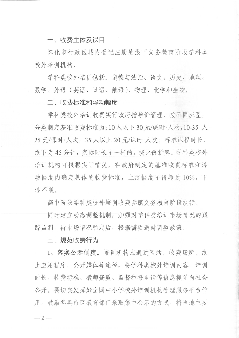 關(guān)于懷化市義務(wù)教育階段學(xué)科類校外培訓(xùn)收費(fèi)有關(guān)問題的通知
