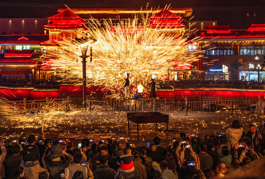 2月14日晚榆樹灣青春廣場的《打鐵花》民俗表演。