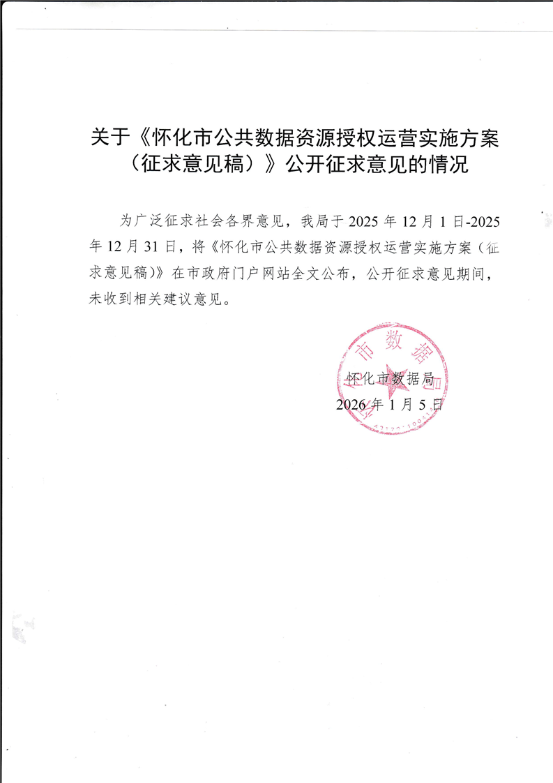 關(guān)于《懷化市公共數(shù)據(jù)資源授權(quán)運(yùn)營(yíng)實(shí)施方案(征求意見(jiàn)稿)》公開(kāi)征求意見(jiàn)的情況