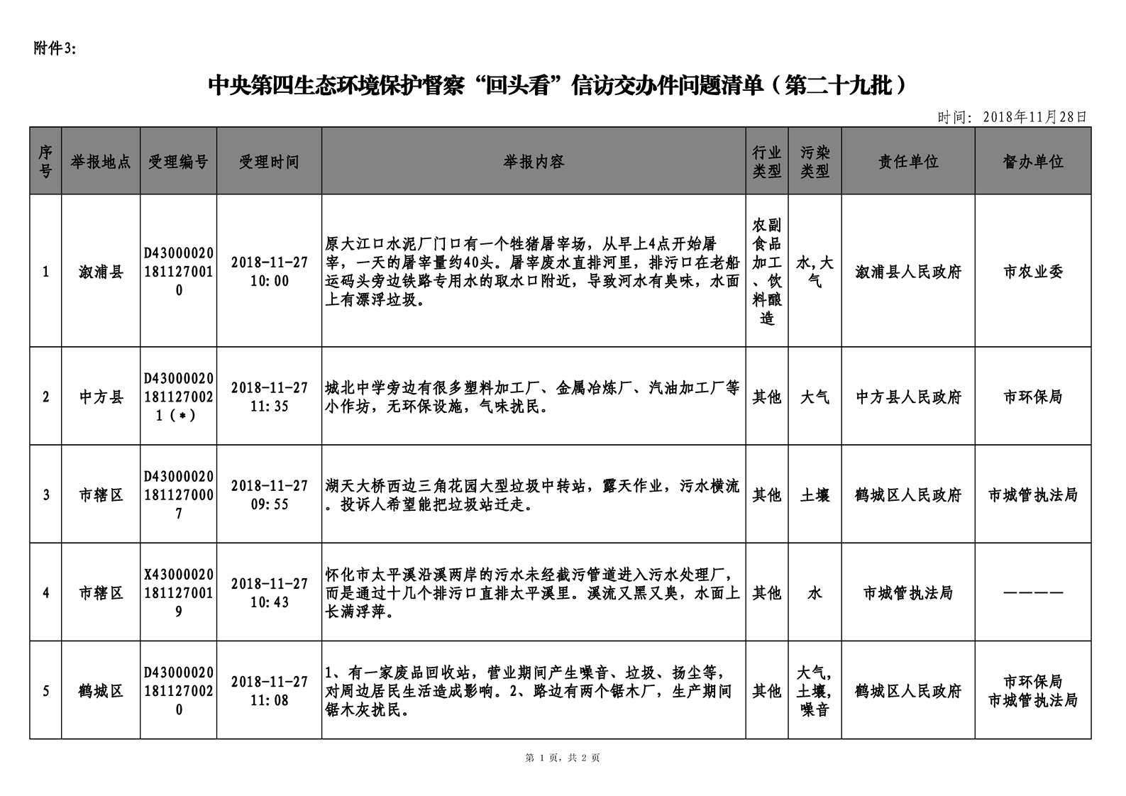 第二十九期 懷化市配合中央生態(tài)環(huán)境督察回頭看工作專報(bào)