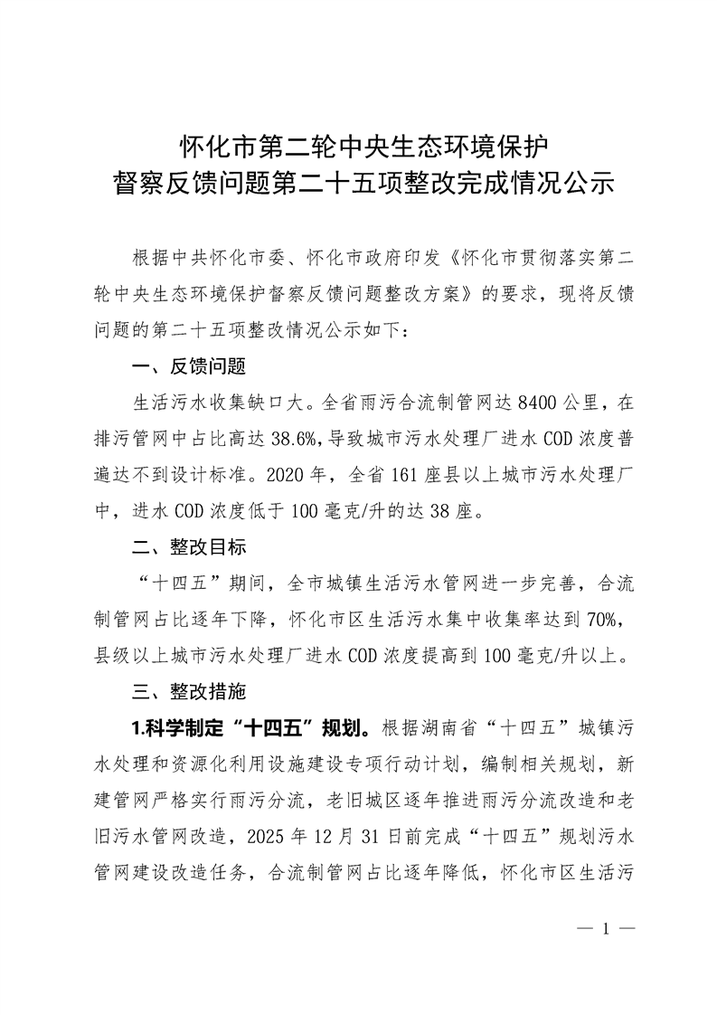 懷化市第二輪中央生態(tài)環(huán)境保護督察反饋問題第二十五項整改完成情況公示