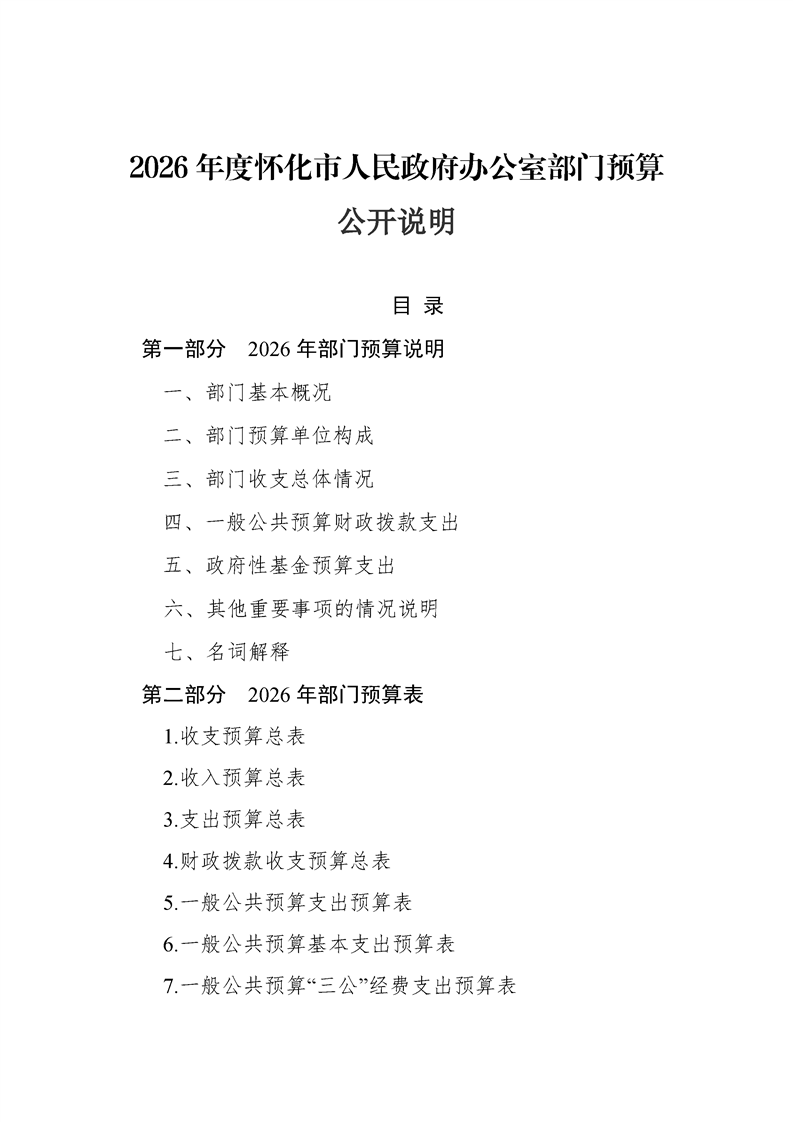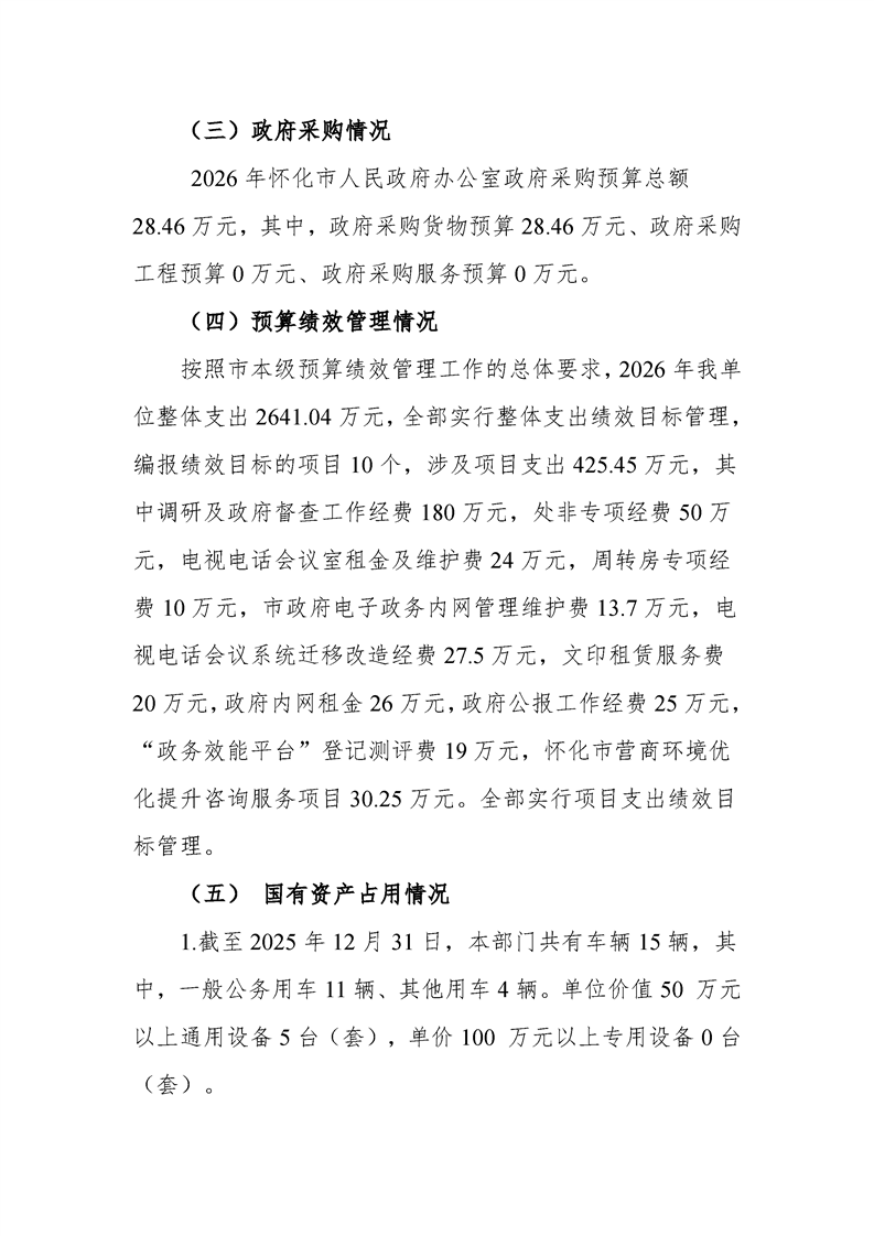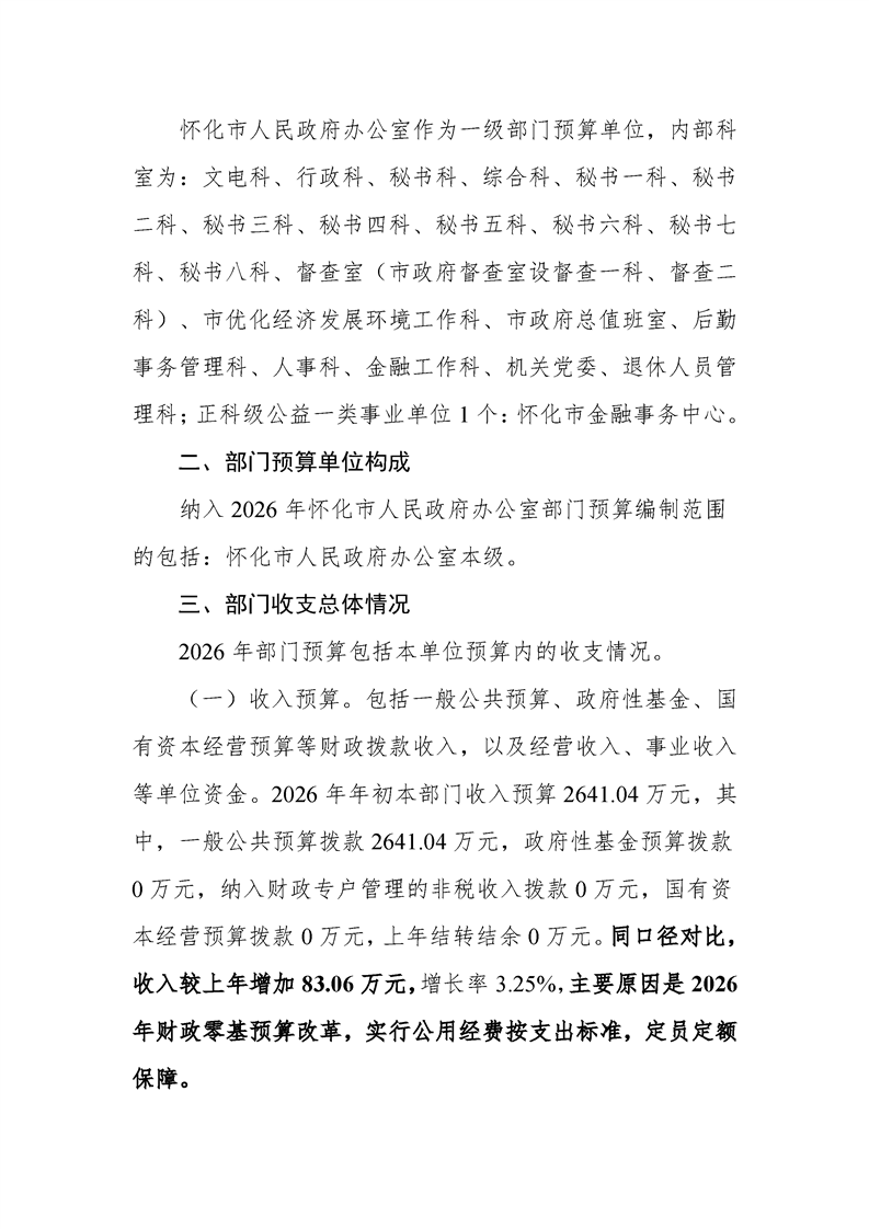 2026年度懷化市人民政府辦公室部門預(yù)算公開(kāi)說(shuō)明
