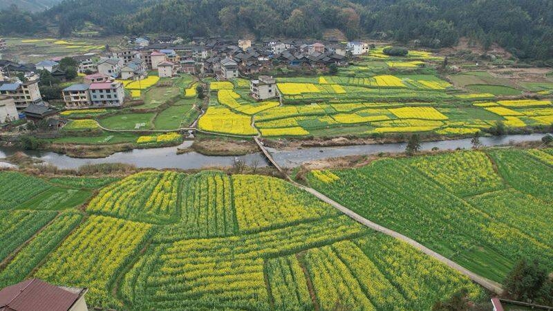 3月4日,通道侗族自治縣牙屯堡鎮(zhèn)牙屯堡村、團(tuán)頭村油菜花迎春綻放,金黃花海沿主干道鋪展,與青瓦木樓、潺潺流水相映成趣,勾勒出一幅欣欣向榮的春日畫卷。近年來,該鎮(zhèn)通過規(guī)?;N植油菜,不僅帶動(dòng)了農(nóng)戶增收,還打造了生態(tài)觀光景觀,實(shí)現(xiàn)經(jīng)濟(jì)、生態(tài)價(jià)值雙豐收。(陸儷文 粟小歡)