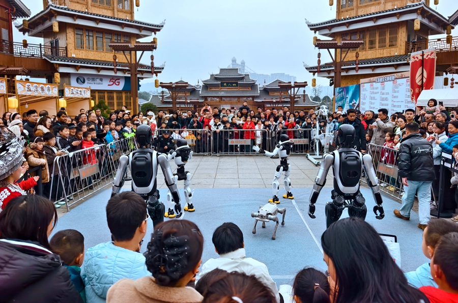1月10日下午,智元機(jī)器人懷化展演活動(dòng)亮相懷化榆樹灣青春廣場,勁舞、特技輪番上演,互動(dòng)趣味十足,吸引了不少游客前來觀看。(懷化日報(bào)全媒體記者 潘雨 攝)