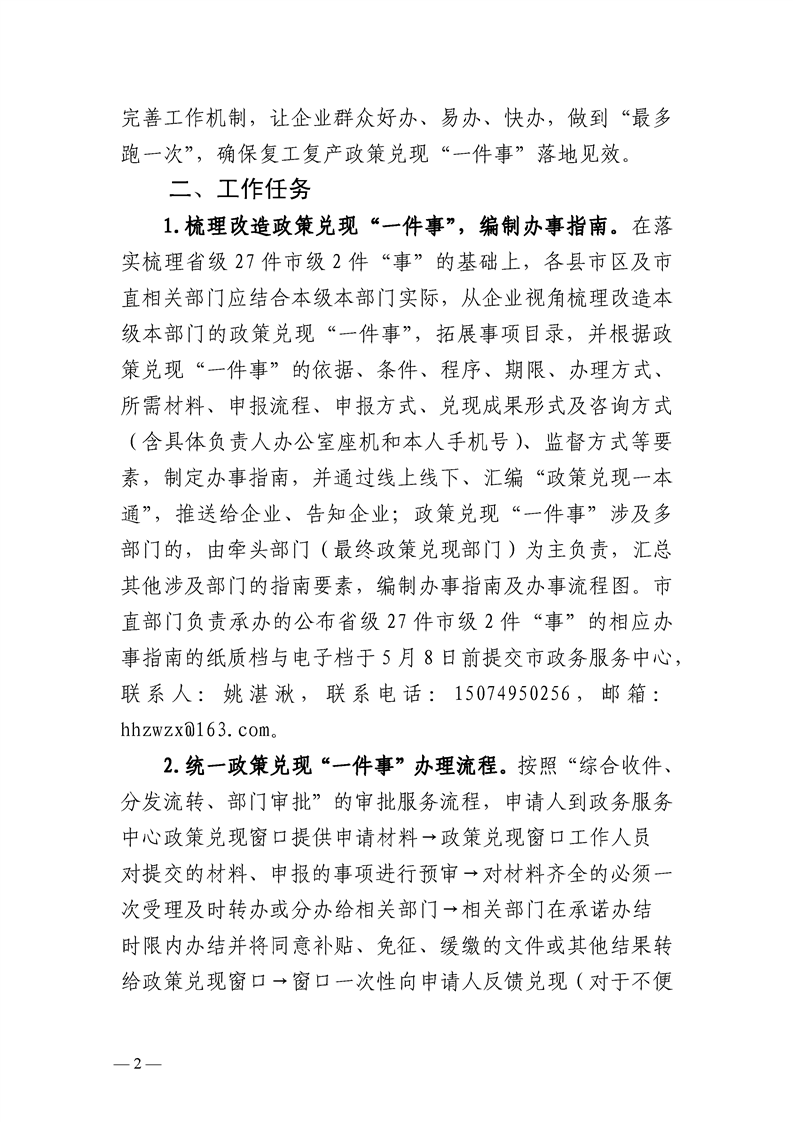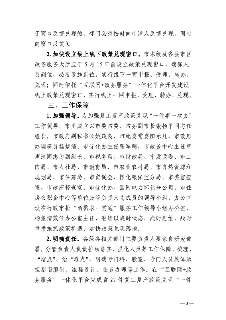 懷化市推進(jìn)復(fù)工復(fù)產(chǎn)政策兌現(xiàn)“一件事一次辦”工作實(shí)施方案