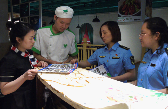 活動當(dāng)天,市場監(jiān)管執(zhí)法人員還走進太平橋市場、佳惠超市太平橋店、華盛堂商場內(nèi)餐飲店,對經(jīng)營者進行點對點、面對面宣傳,要求做到不采購、不加工、不售賣野生蘑菇,嚴防毒蘑菇流入餐桌。