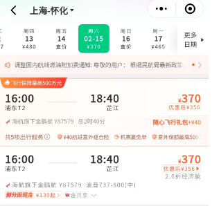 該航線由金鵬航空?qǐng)?zhí)飛,每周飛行三班,班期為每周二、四、六,來程航班號(hào)為Y87579,16:00從上海浦東起飛,18:40到達(dá)懷化芷江,回程航班號(hào)為Y87580,19:50從懷化芷江起飛,22:10到達(dá)上海浦東。具體的航班時(shí)間和票價(jià)信息已在各大售票平臺(tái)公布,旅客可根據(jù)自己的出行計(jì)劃提前購票。