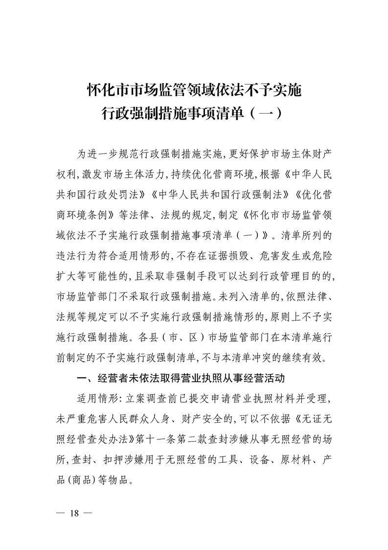 關(guān)于印發(fā)《懷化市市場監(jiān)督管理行政處罰裁量權(quán)實(shí)施辦法及基準(zhǔn)》《懷化市市場監(jiān)管領(lǐng)域依法不予實(shí)施行政強(qiáng)制措施事項(xiàng)清單(一)》的通知
