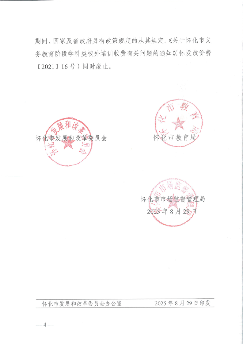 關(guān)于懷化市義務(wù)教育階段學(xué)科類校外培訓(xùn)收費(fèi)有關(guān)問題的通知