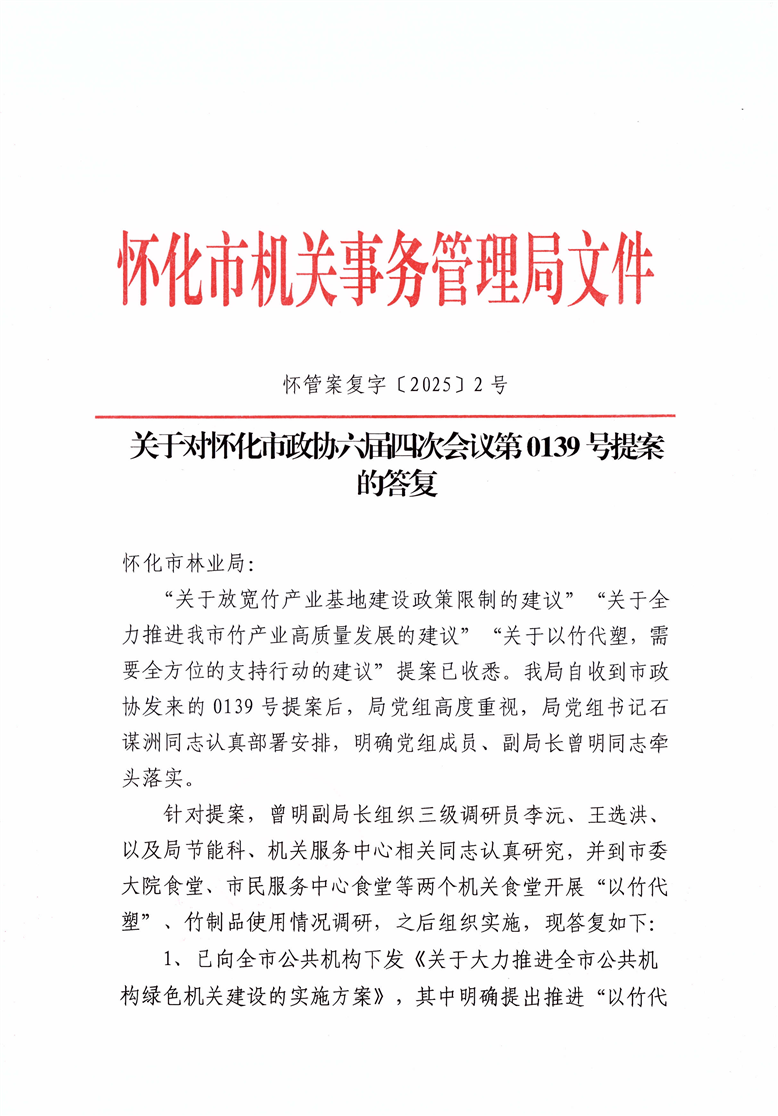 關(guān)于對(duì)懷化市政協(xié)六屆四次會(huì)議第0139號(hào)提案的答復(fù)