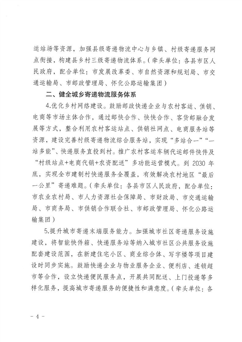 懷化市人民政府印發(fā)《關(guān)于建設(shè)國家郵政快遞樞紐城市促進(jìn)懷化市郵政快遞業(yè)高質(zhì)量發(fā)展的實(shí)施意見》的通知