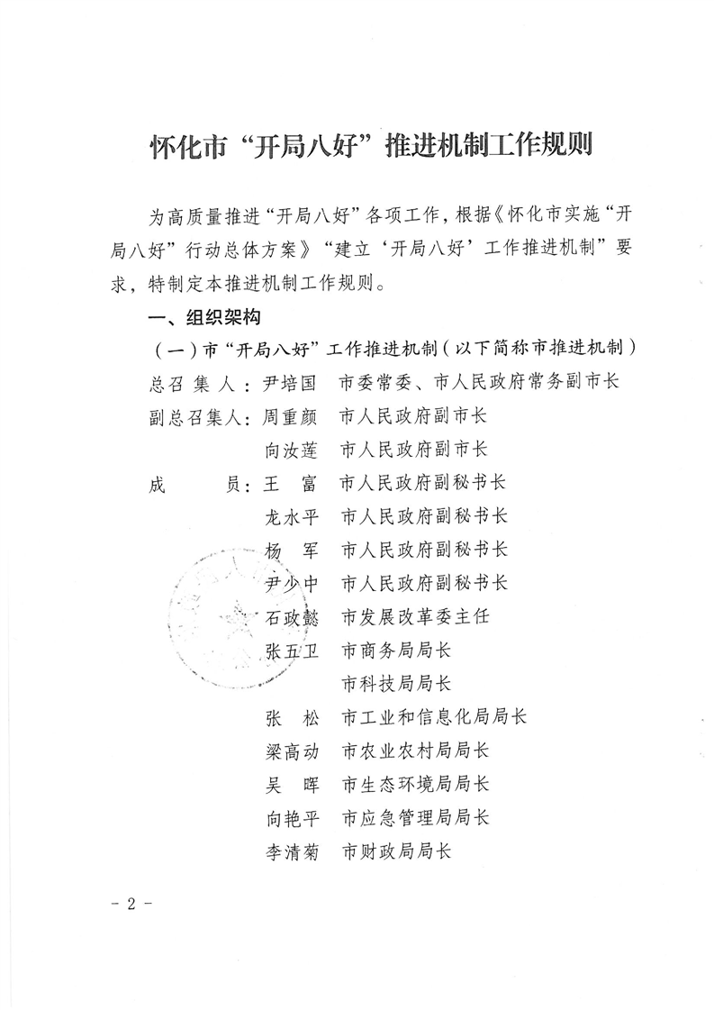 懷化市人民政府辦公室關(guān)于印發(fā)《懷化市“開局八好”推進機制工作規(guī)則》的通知