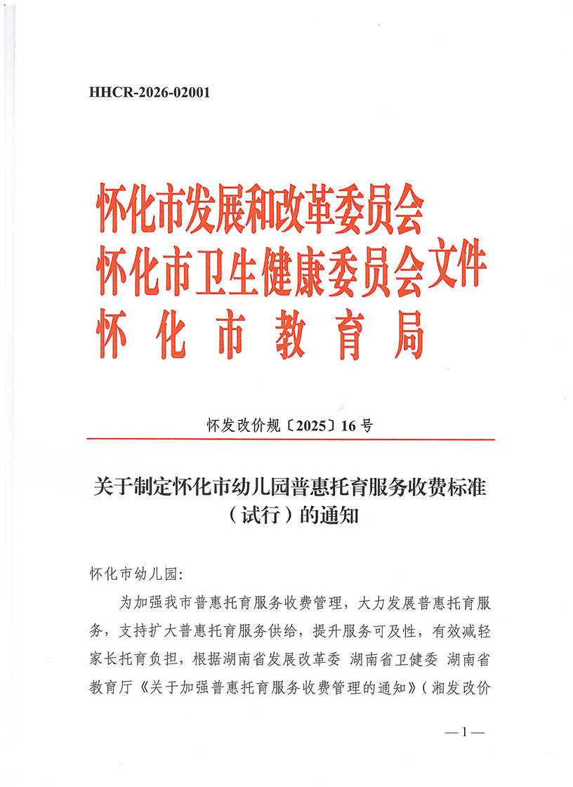 關(guān)于制定懷化市幼兒園普惠托育服務(wù)收費(fèi)標(biāo)準(zhǔn)(試行)的通知