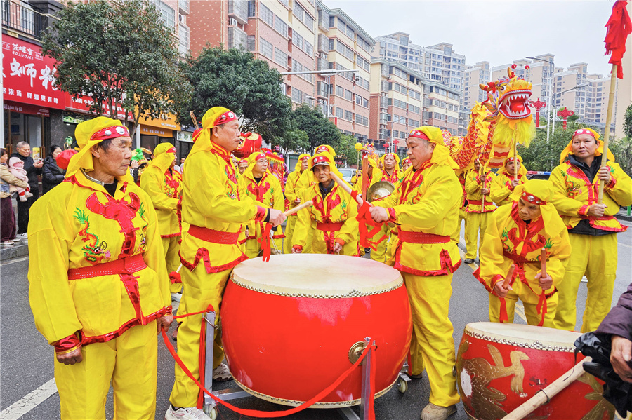 3月3日元宵佳節(jié),會同縣山水龍城廣場鼓點鏗鏘,龍獅隊齊聚一堂,以精湛技藝上演文化盛宴。